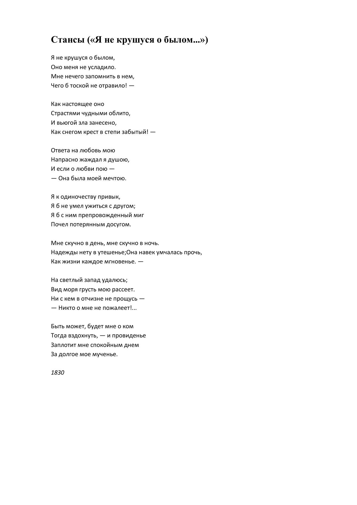 Стансы (Я не крушуся о былом...)