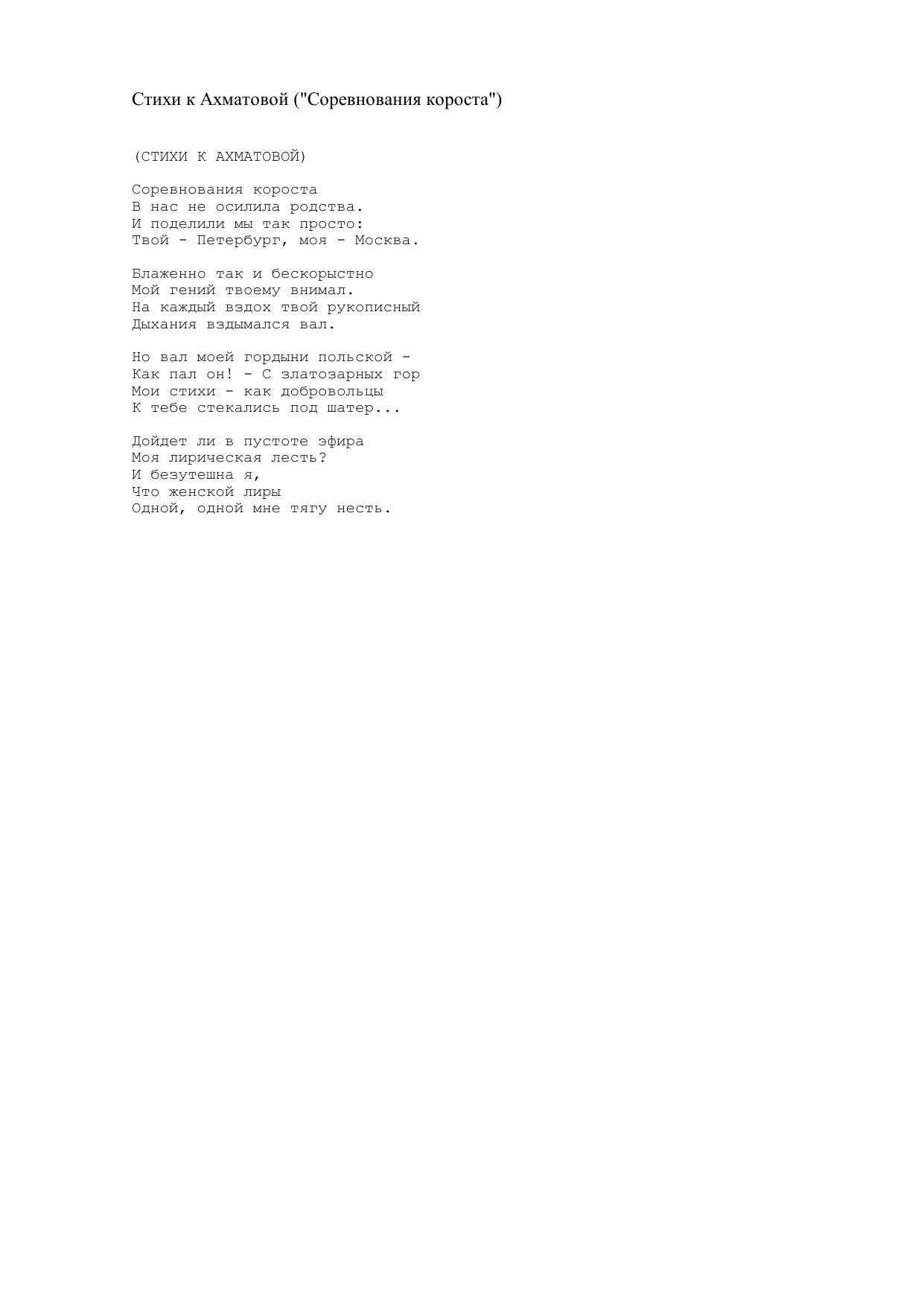 Стихи к Ахматовой