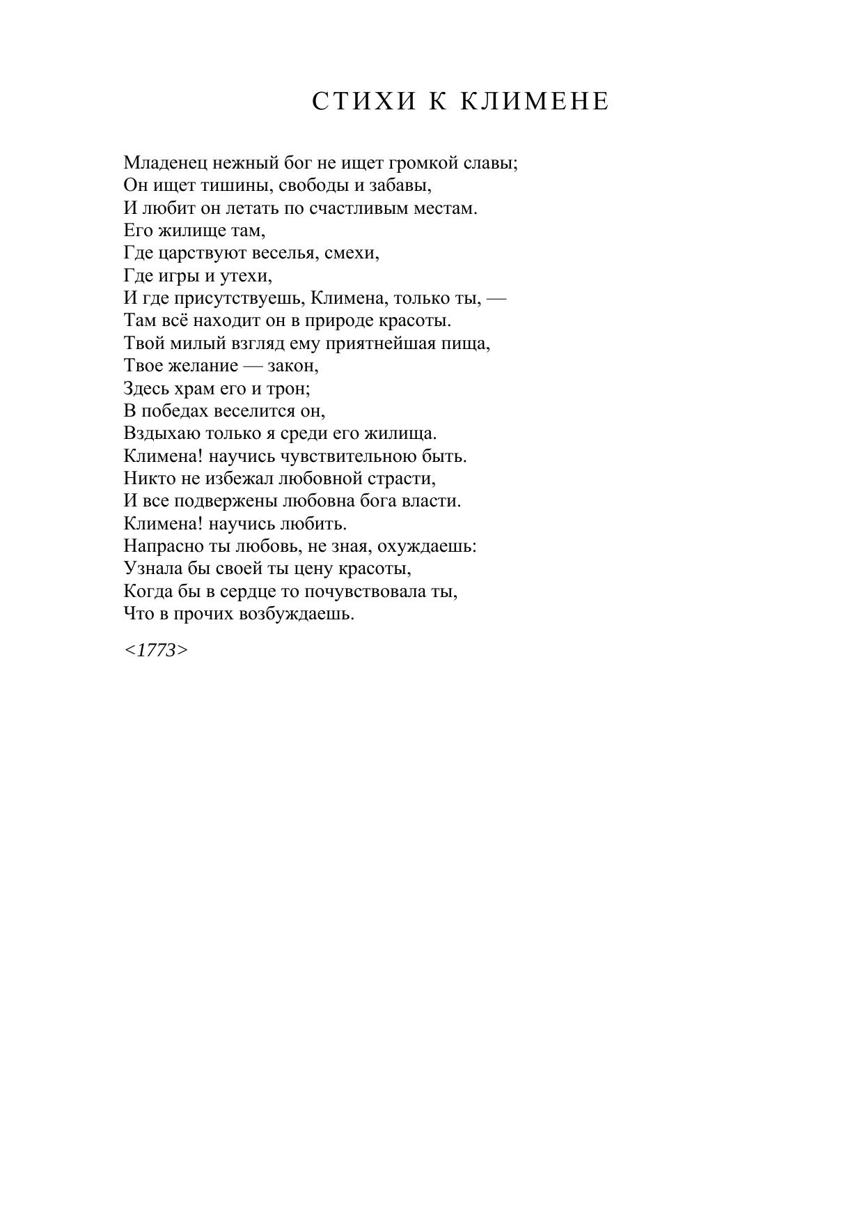 Стихи к Клемене (Младенец нежный бог не ищет громкой славы…)
