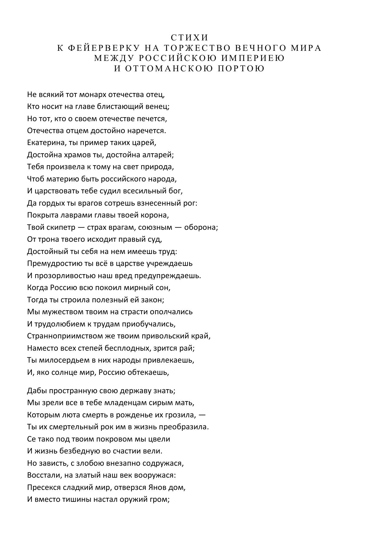Стихи к фейерверку на торжество вечного мира между Российскою Империею и Оттоманскою Портою