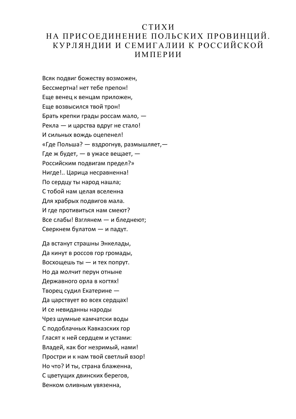 Стихи на присоединение польских провинций, Курляндии и Семигалии к Российской империи