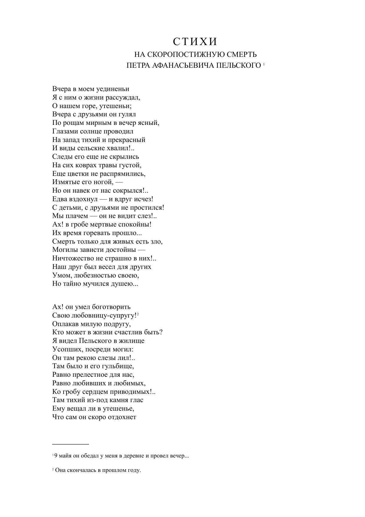 Стихи на скоропостижную смерть Петра Афанасьевича Пельского