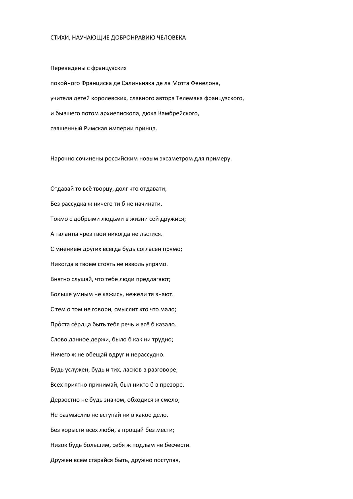 Стихи, научающие добронравию человека