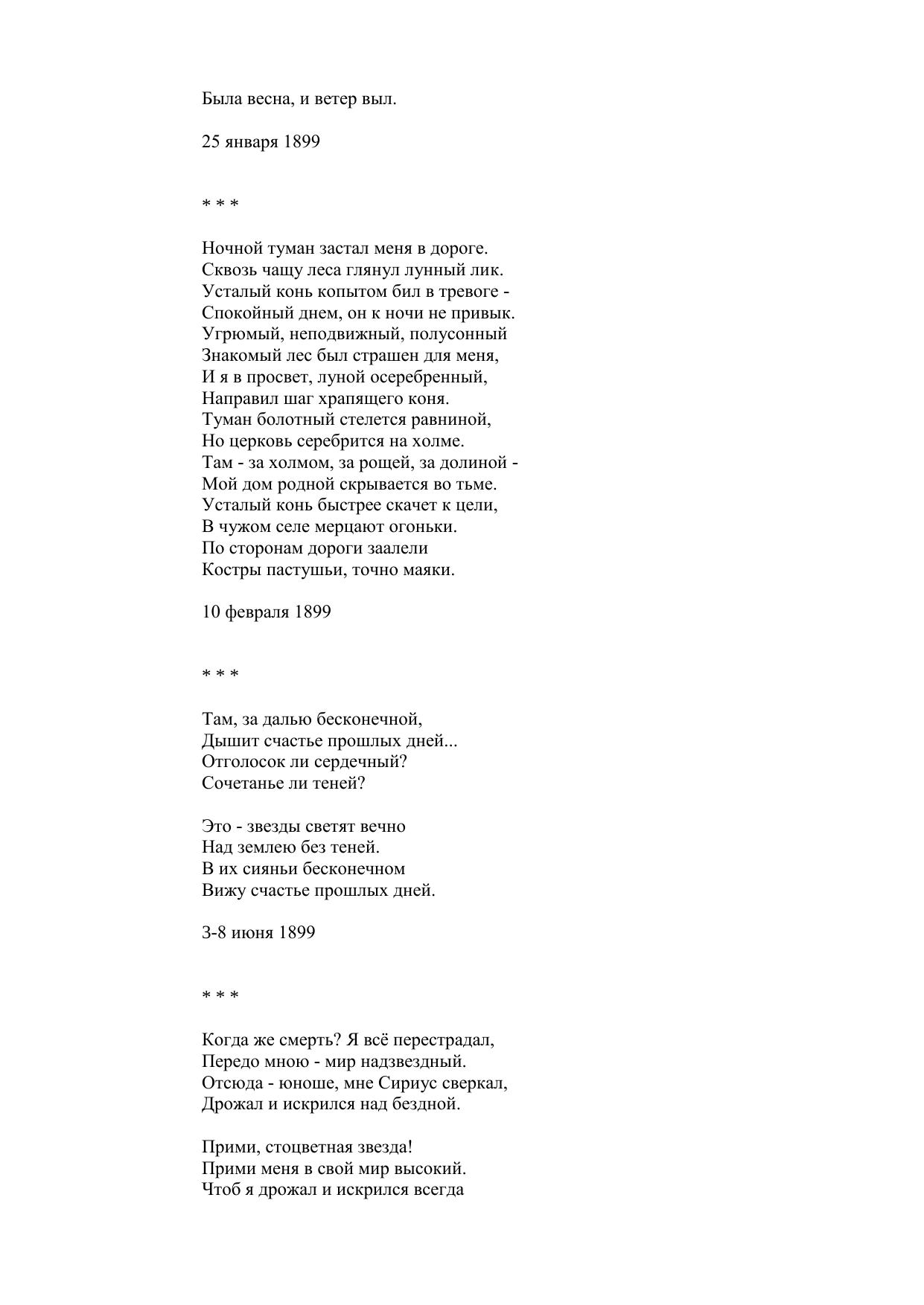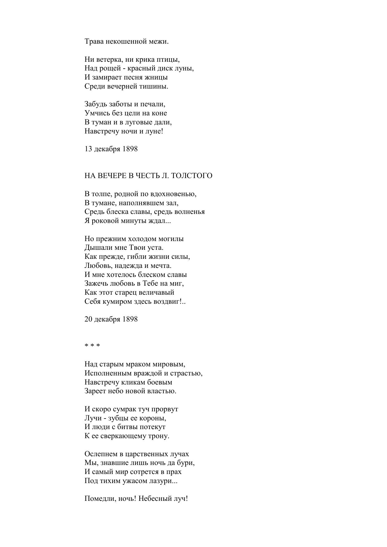 Стихотворения 1897-1903 гг, не вошедшие в основное собрание