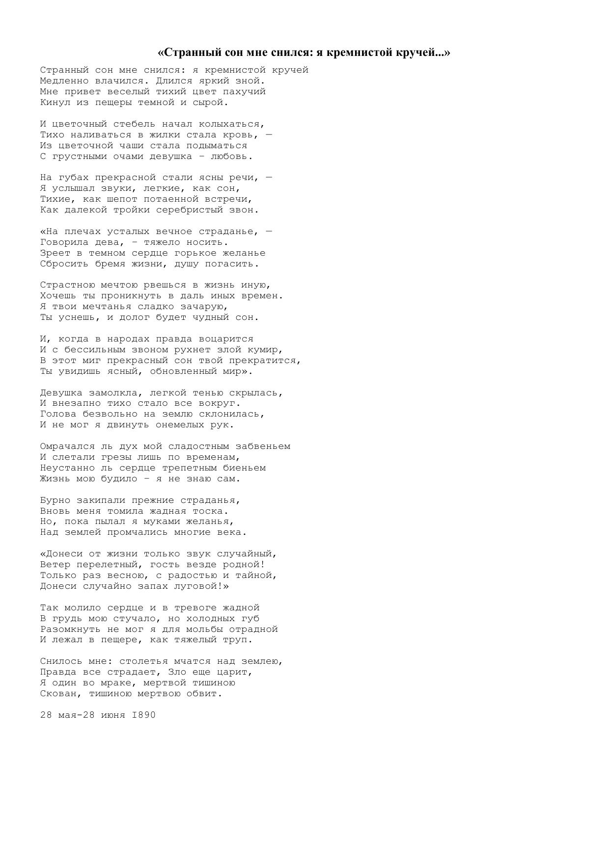 Странный сон мне снился: я кремнистой кручей…