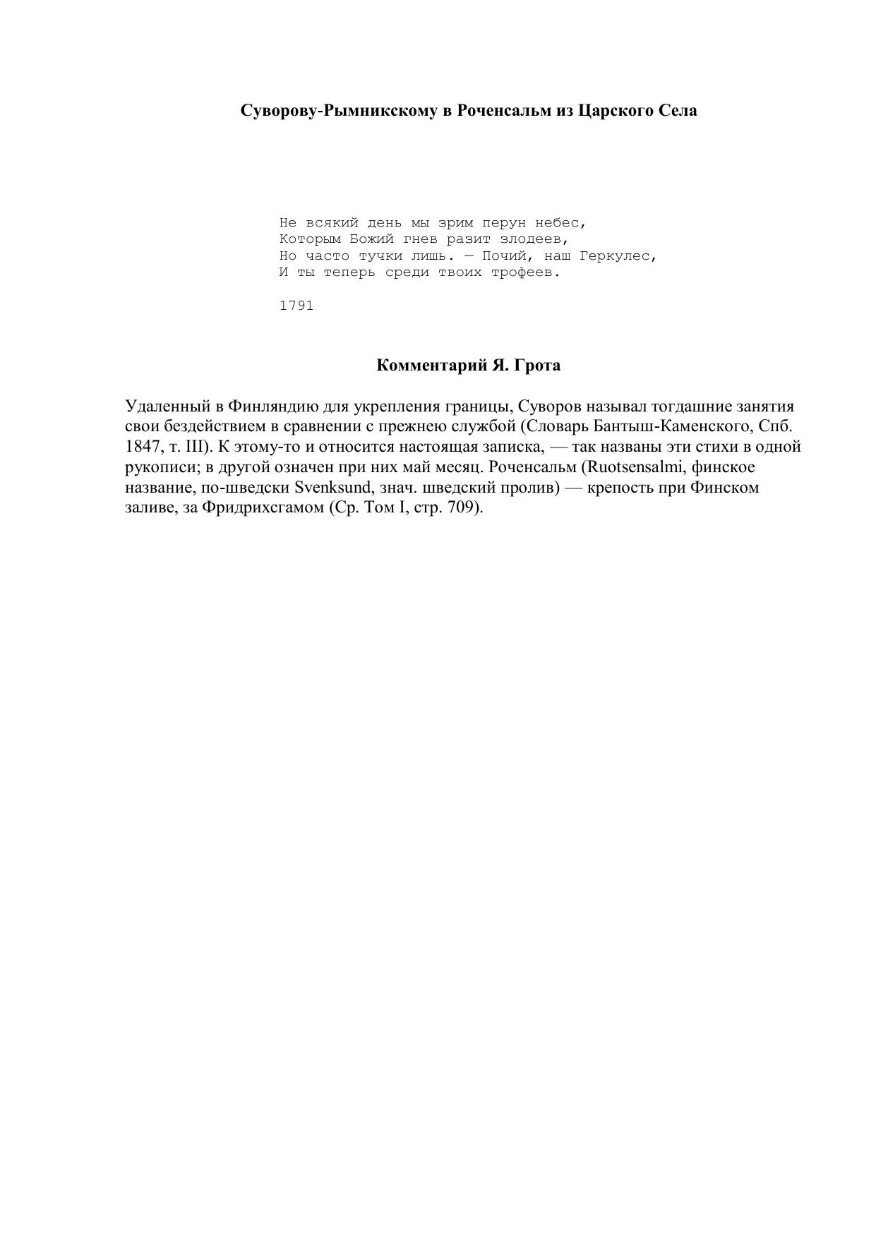 Суворову-Рымникскому в Роченсальм из Царского Села