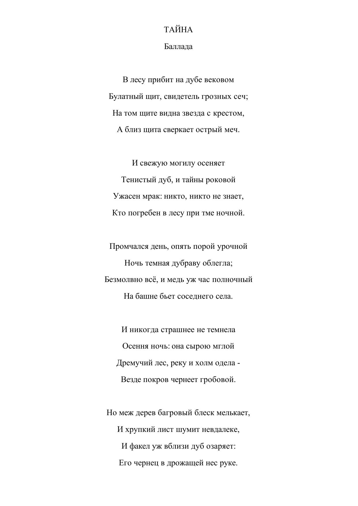 Тайна. Баллада