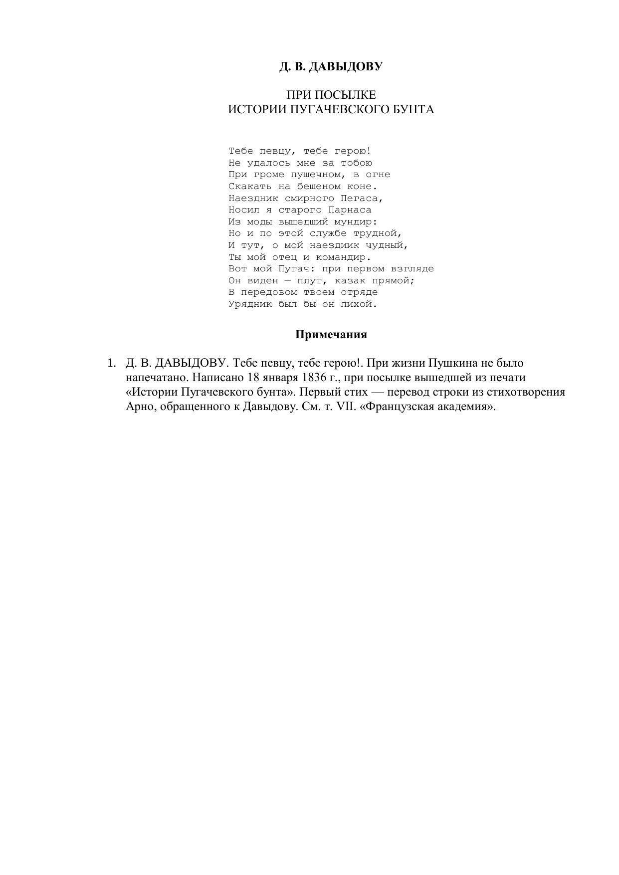 Тебе певцу, тебе герою...")