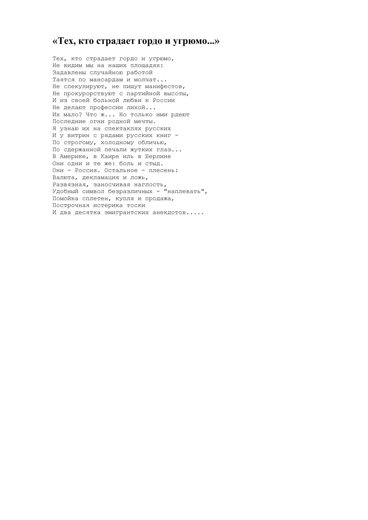 Тех, кто страдает гордо и угрюмо...