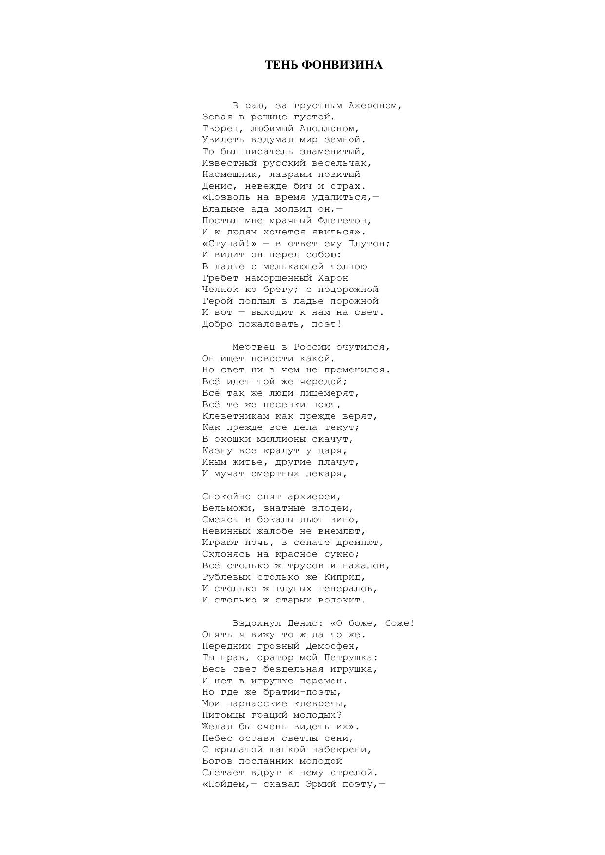 Тень Фонвизина ("В раю, за грустным Ахероном...")