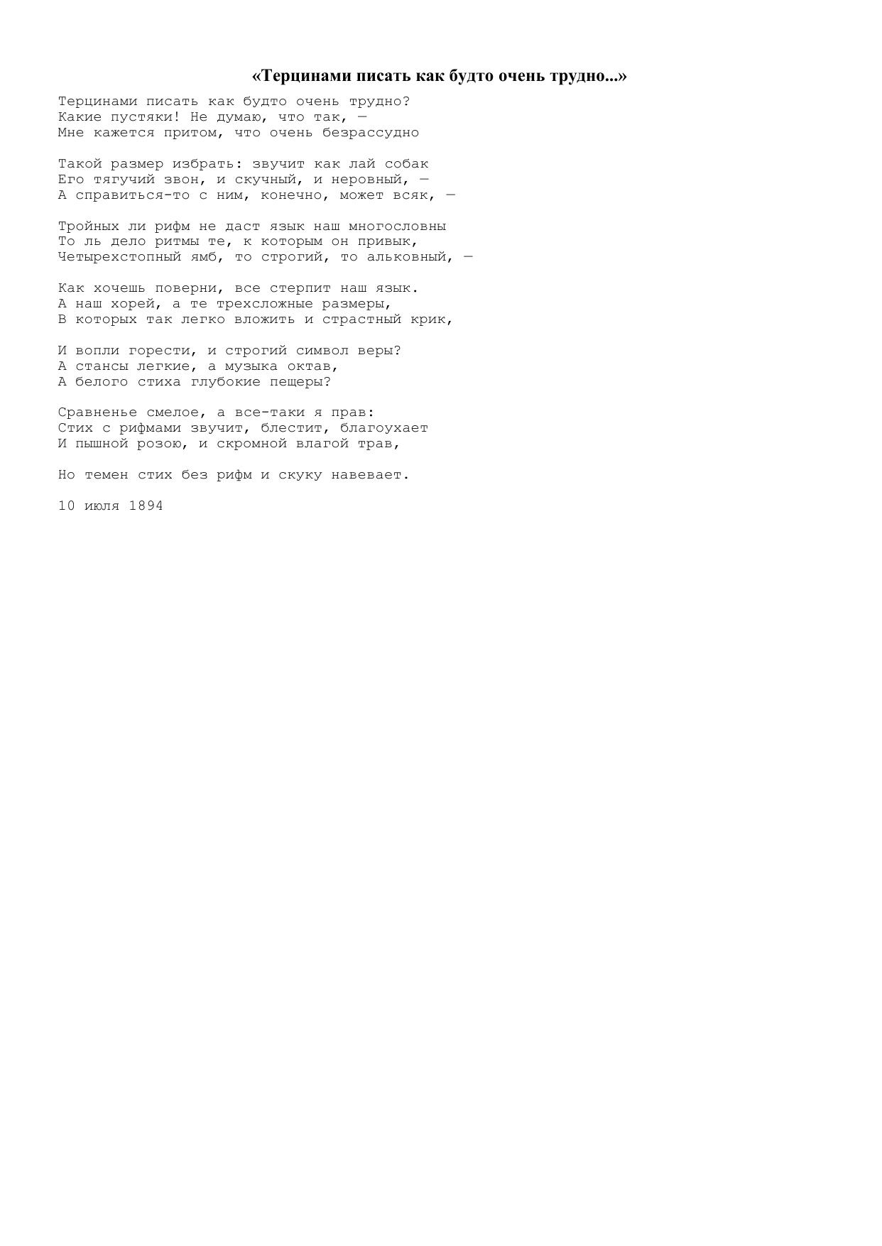 Терцинами писать как будто очень трудно…