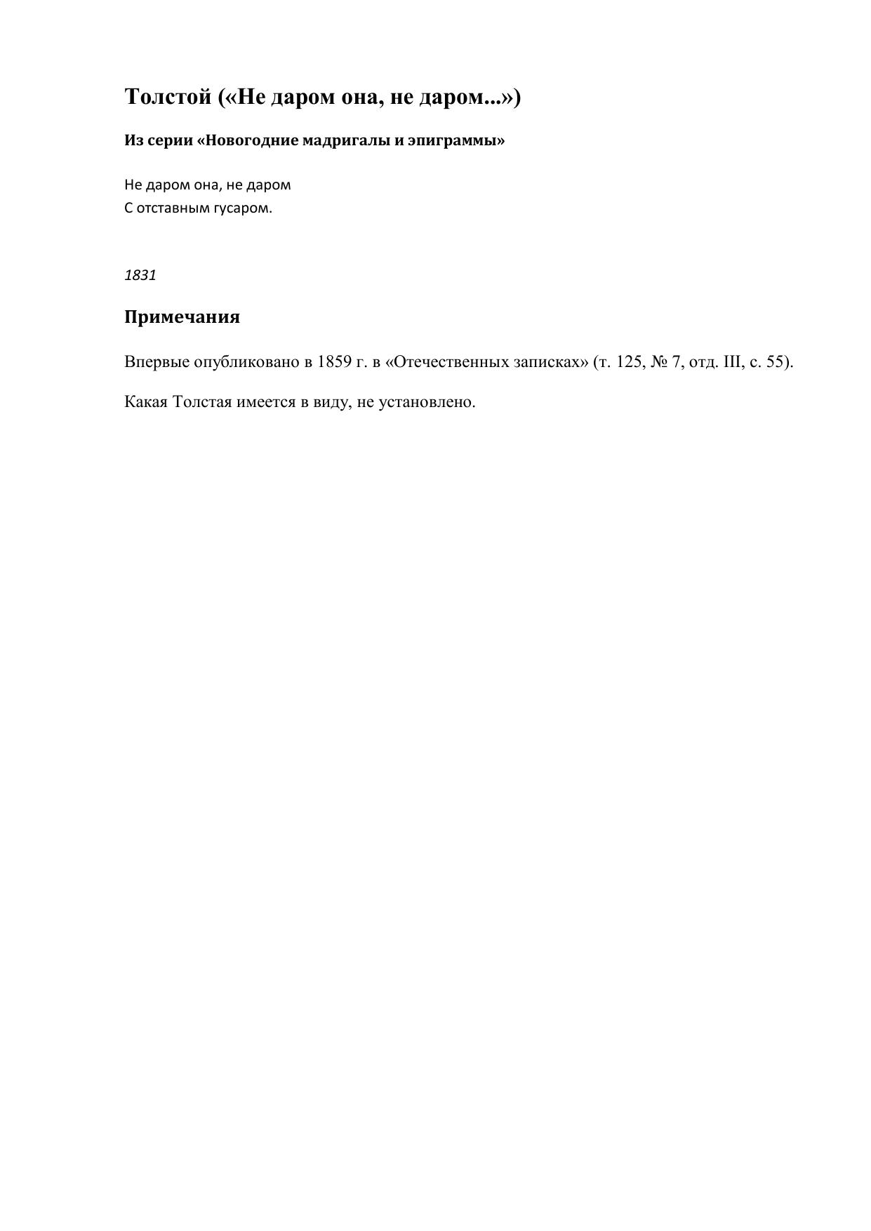 Толстой (Не даром она, не даром...)
