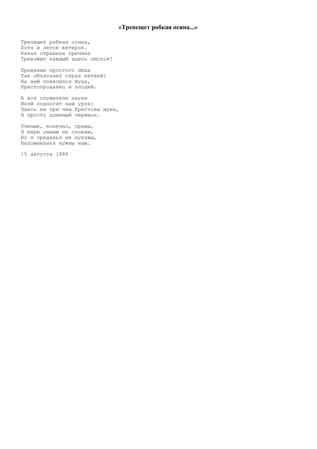 Трепещет робкая осина…