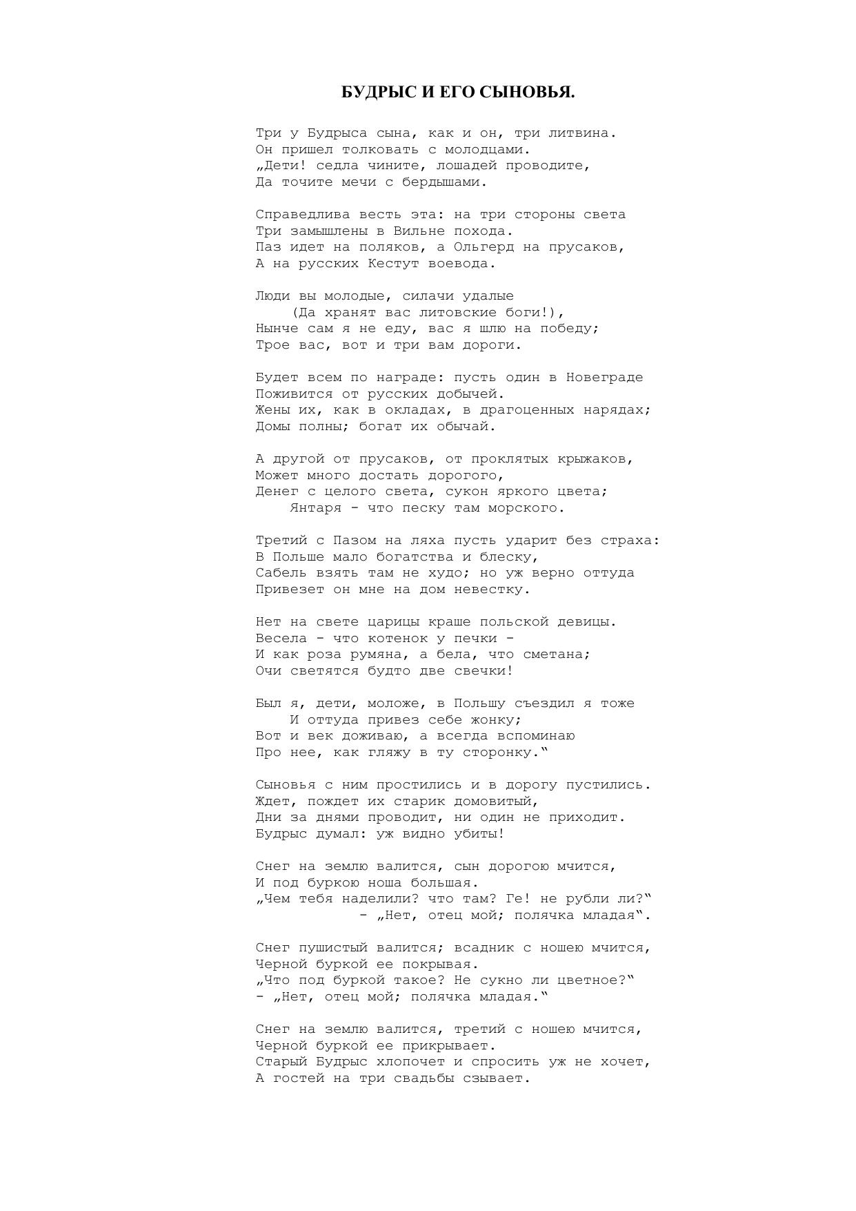 Три у Будрыса сына, как и он, три литвина....")