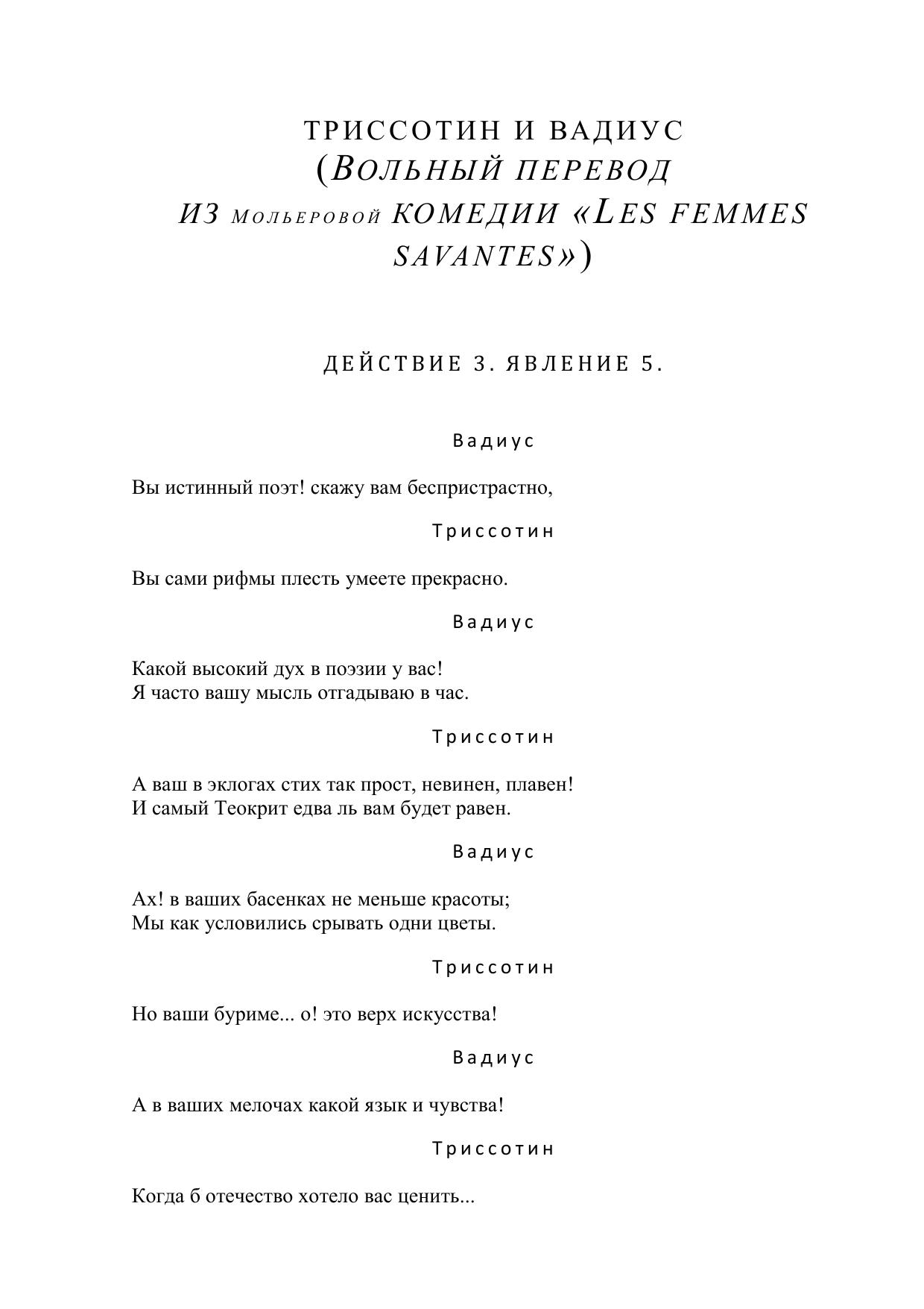 Триссотин и Вадиус (Вольный перевод из Мольеровой комедии «Les femmes savantes»)