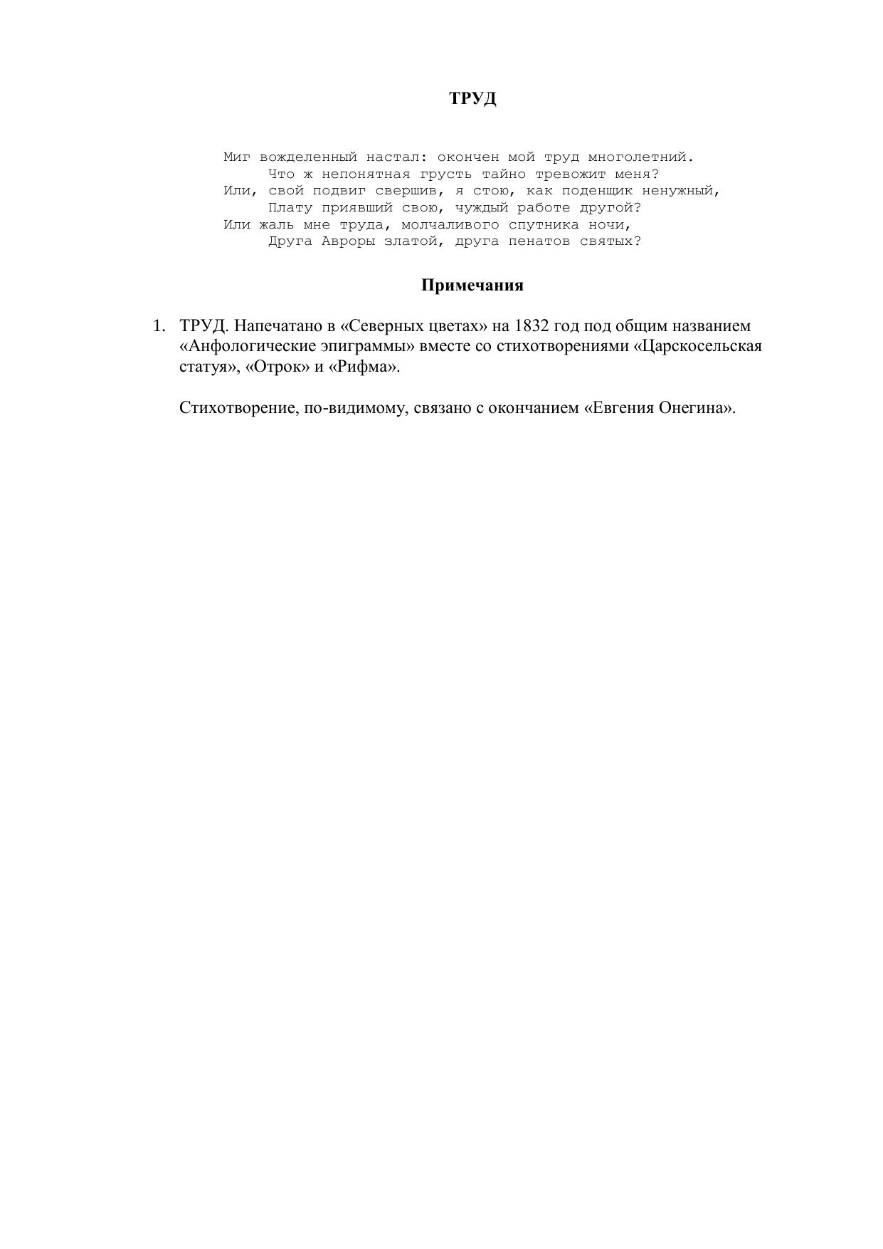 Труд ("Миг вожделенный настал: окончен мой труд многолетний...")