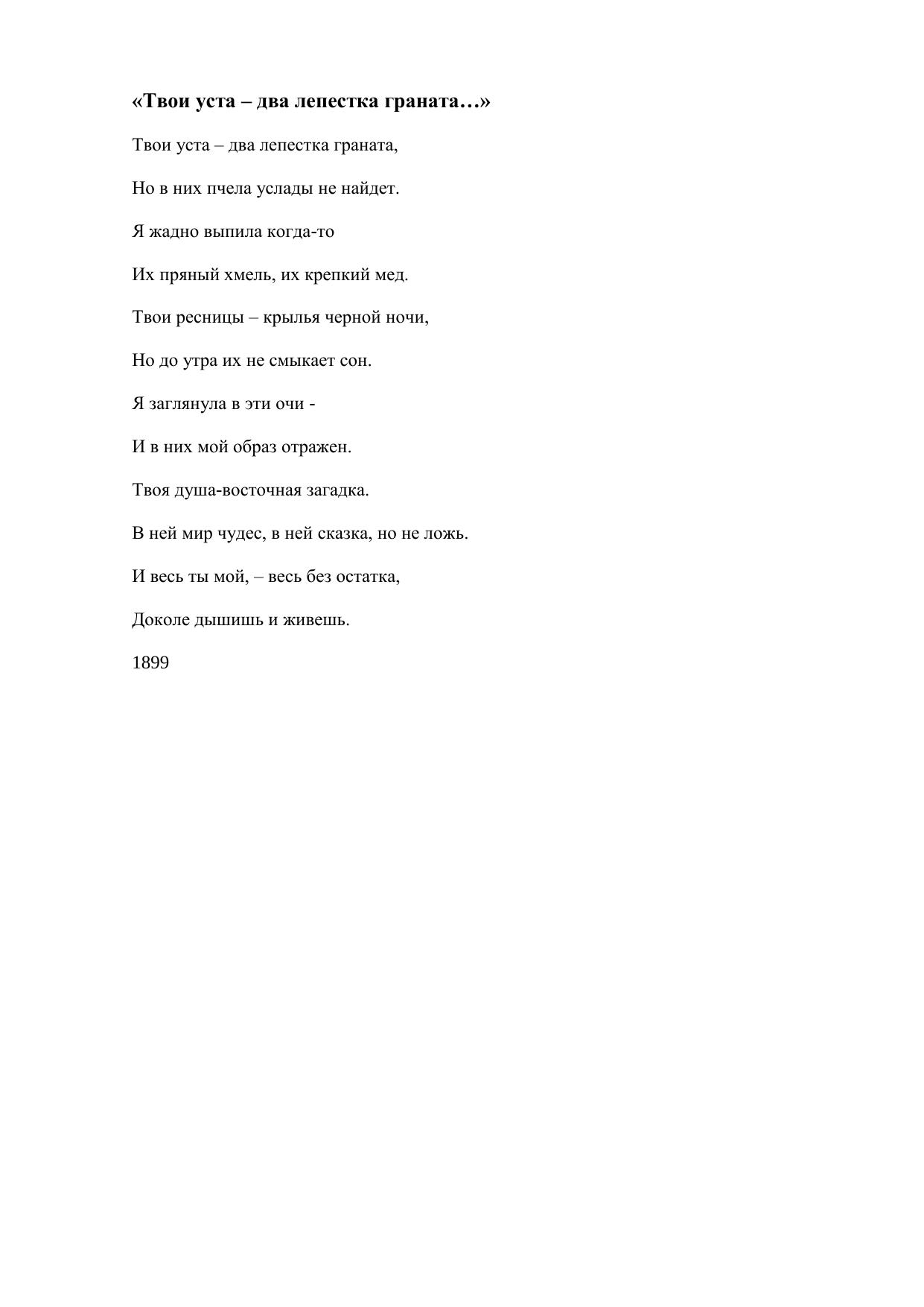 Твои уста – два лепестка граната…