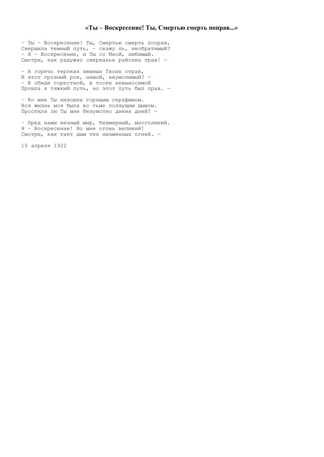 Ты – Воскресение! Ты, Смертью смерть поправ…