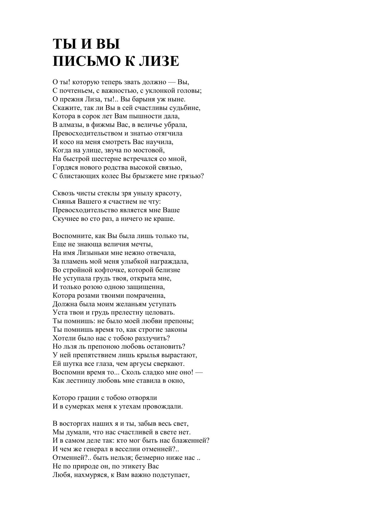 Ты и Вы. Письмо к Лизе