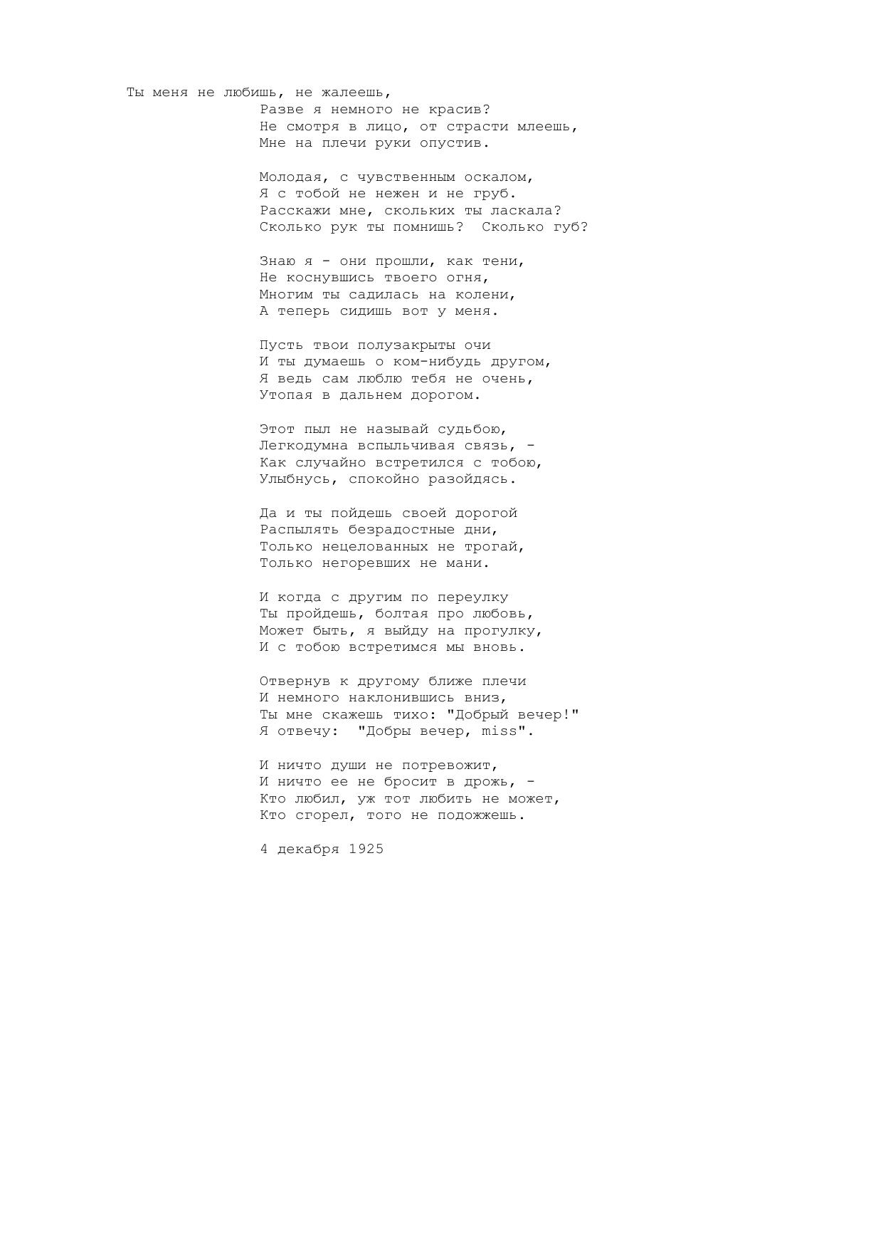 Ты меня не любишь, не жалеешь...