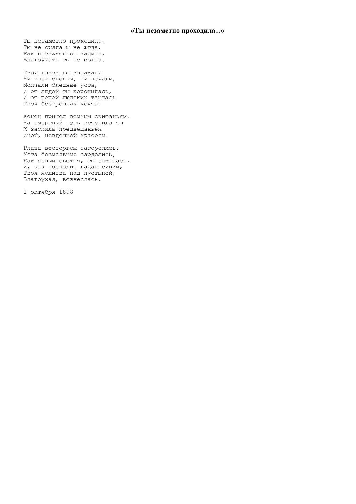 Ты незаметно проходила…