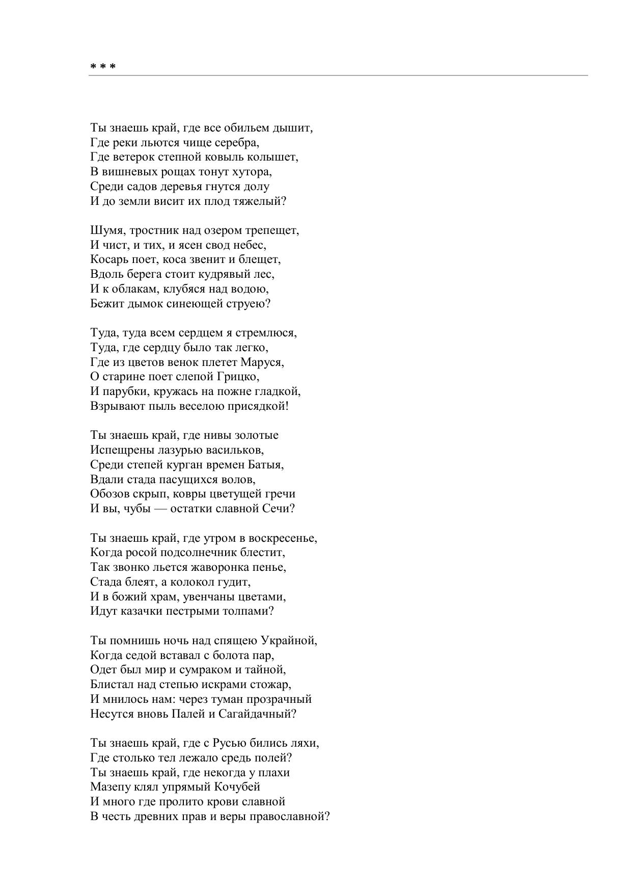 Ты знаешь край, где всё обильем дышит…