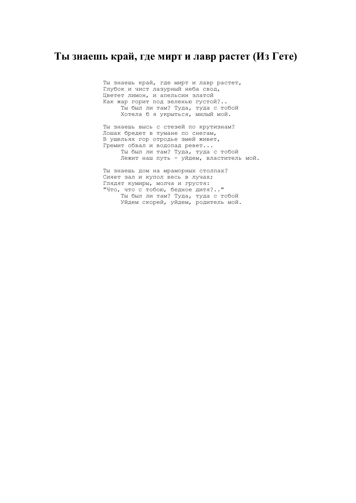 Ты знаешь край, где мирт и лавр растёт...