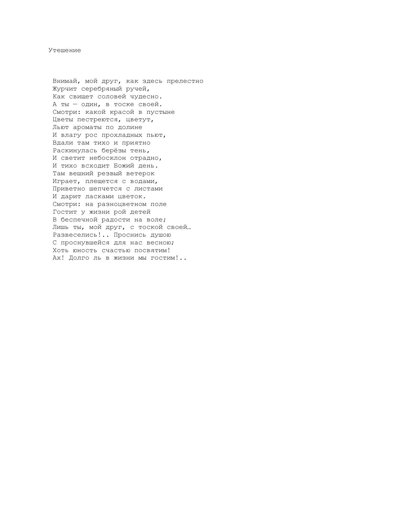 Утешение (Внимай, мой друг, как здесь прелестно…)