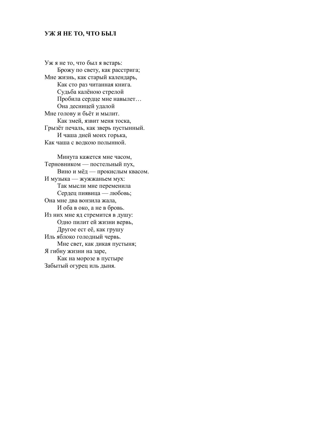Уж я не то, что был я встарь…