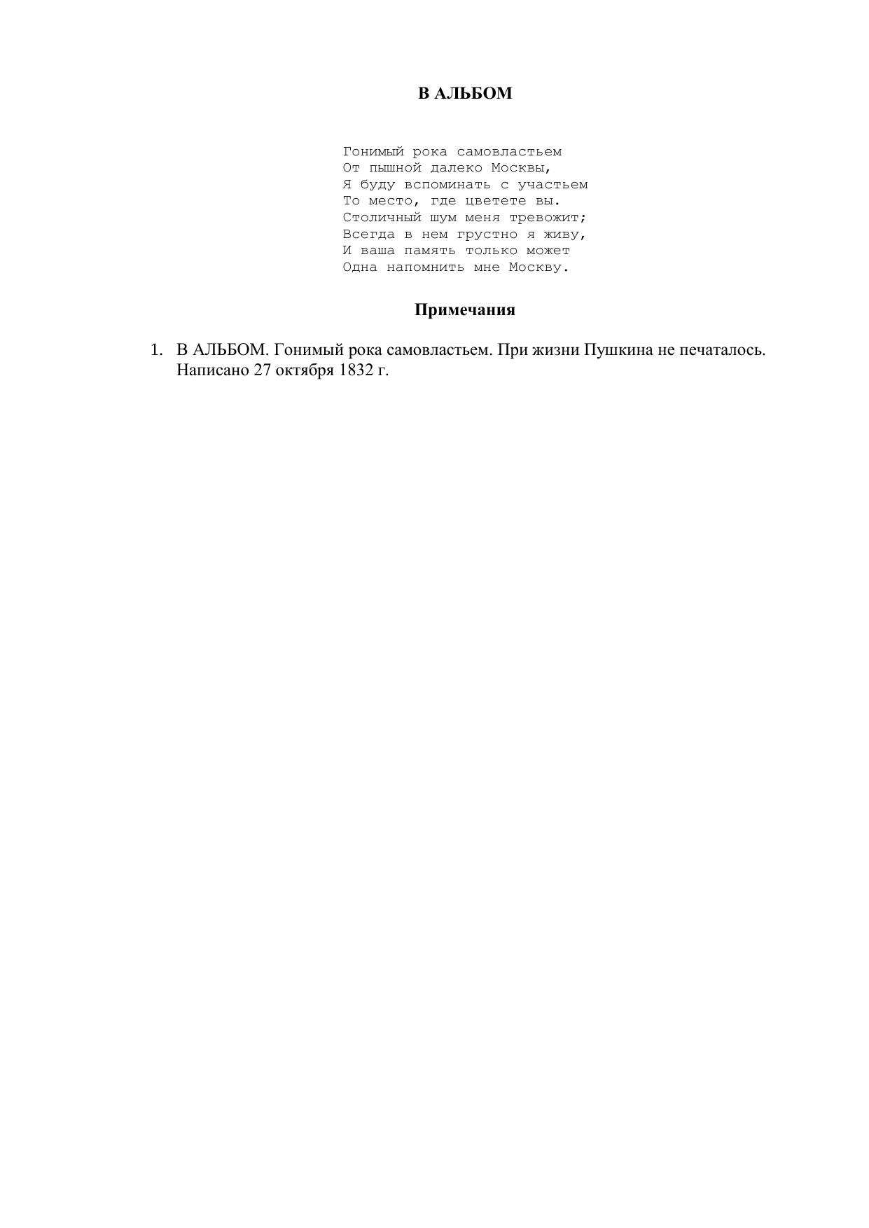 В альбом ("Гонимый рока самовластьем...")