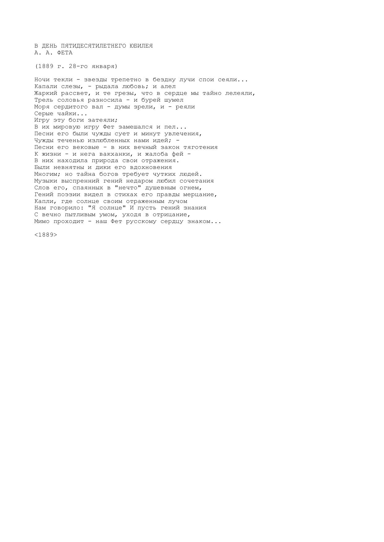 В день пятидесятилетнего юбилея А. А. Фета