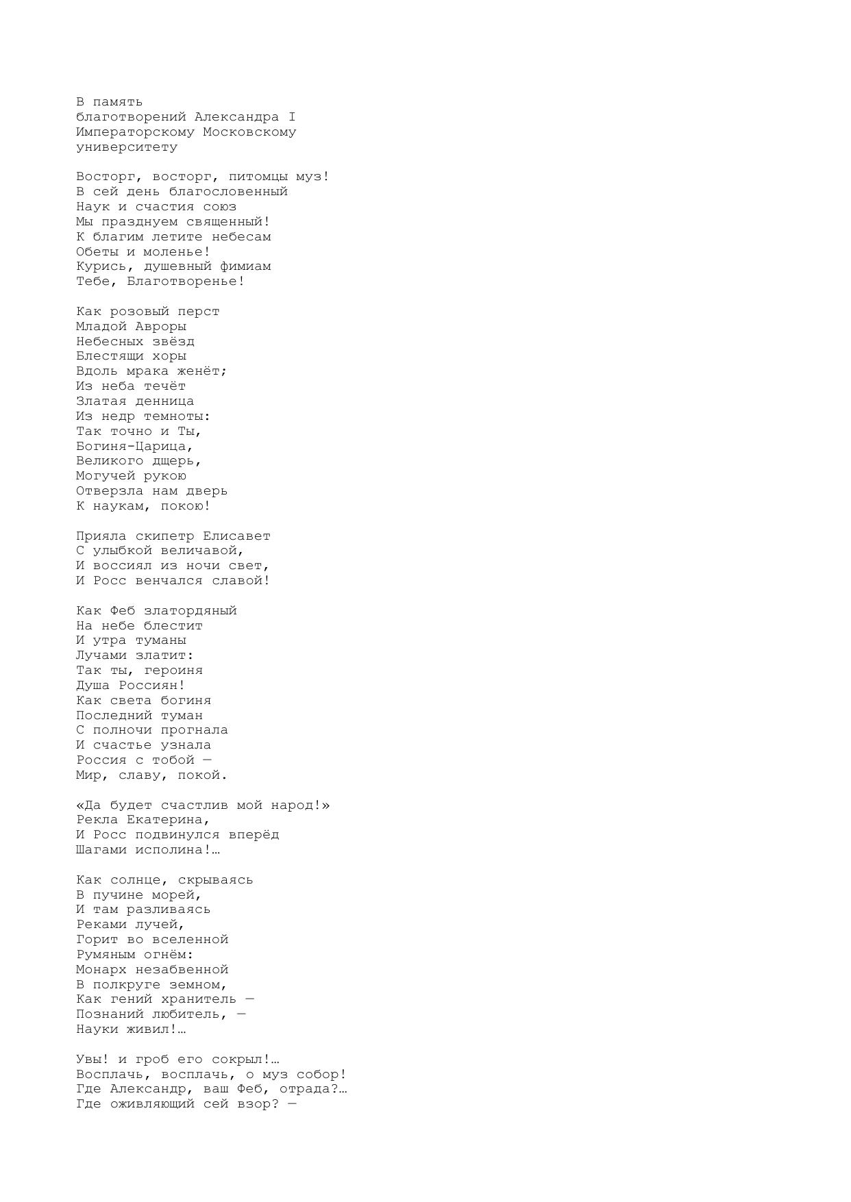 В память благотворений Александра I Императорскому Московскому университету