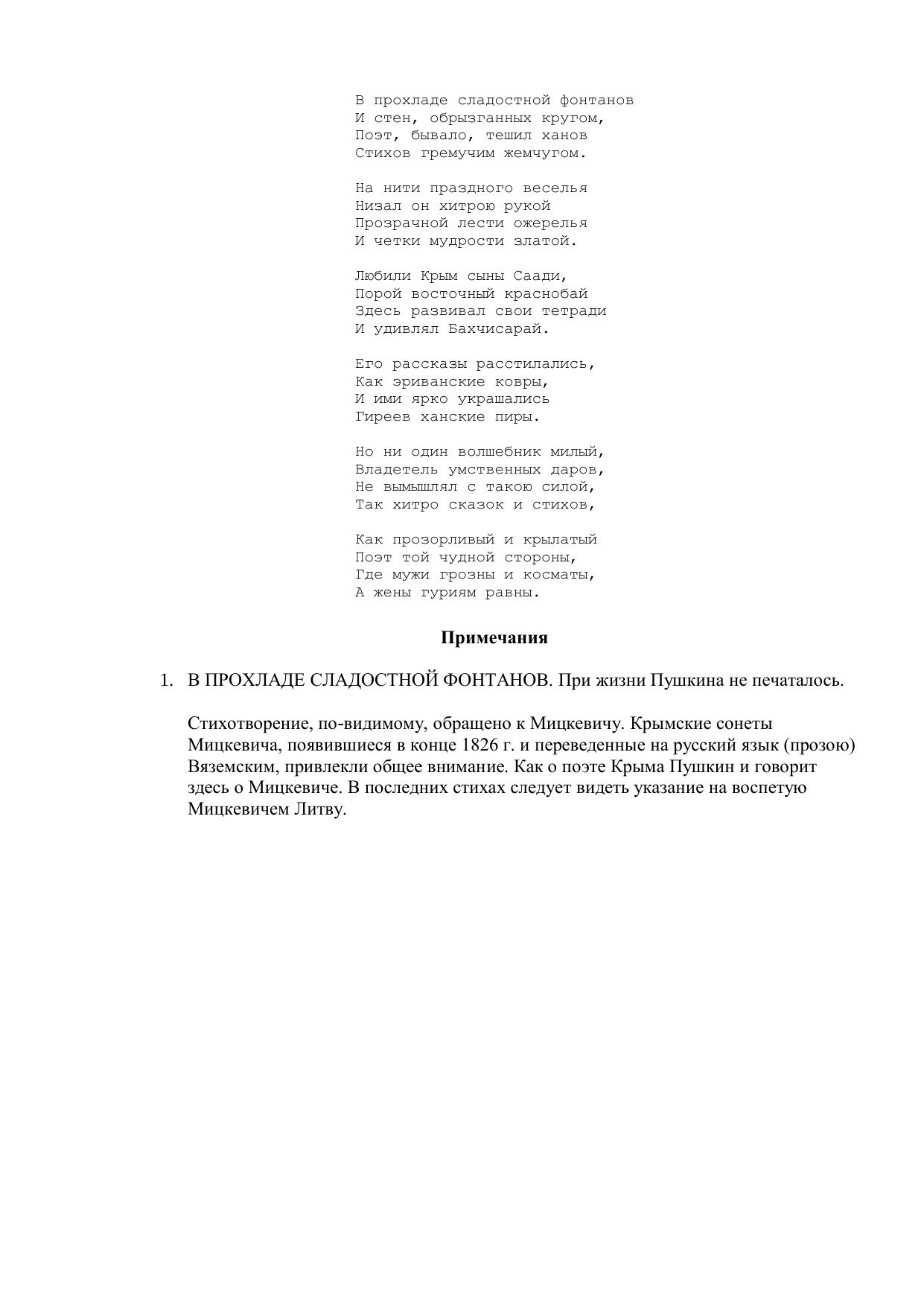 В прохладе сладостной фонтанов…
