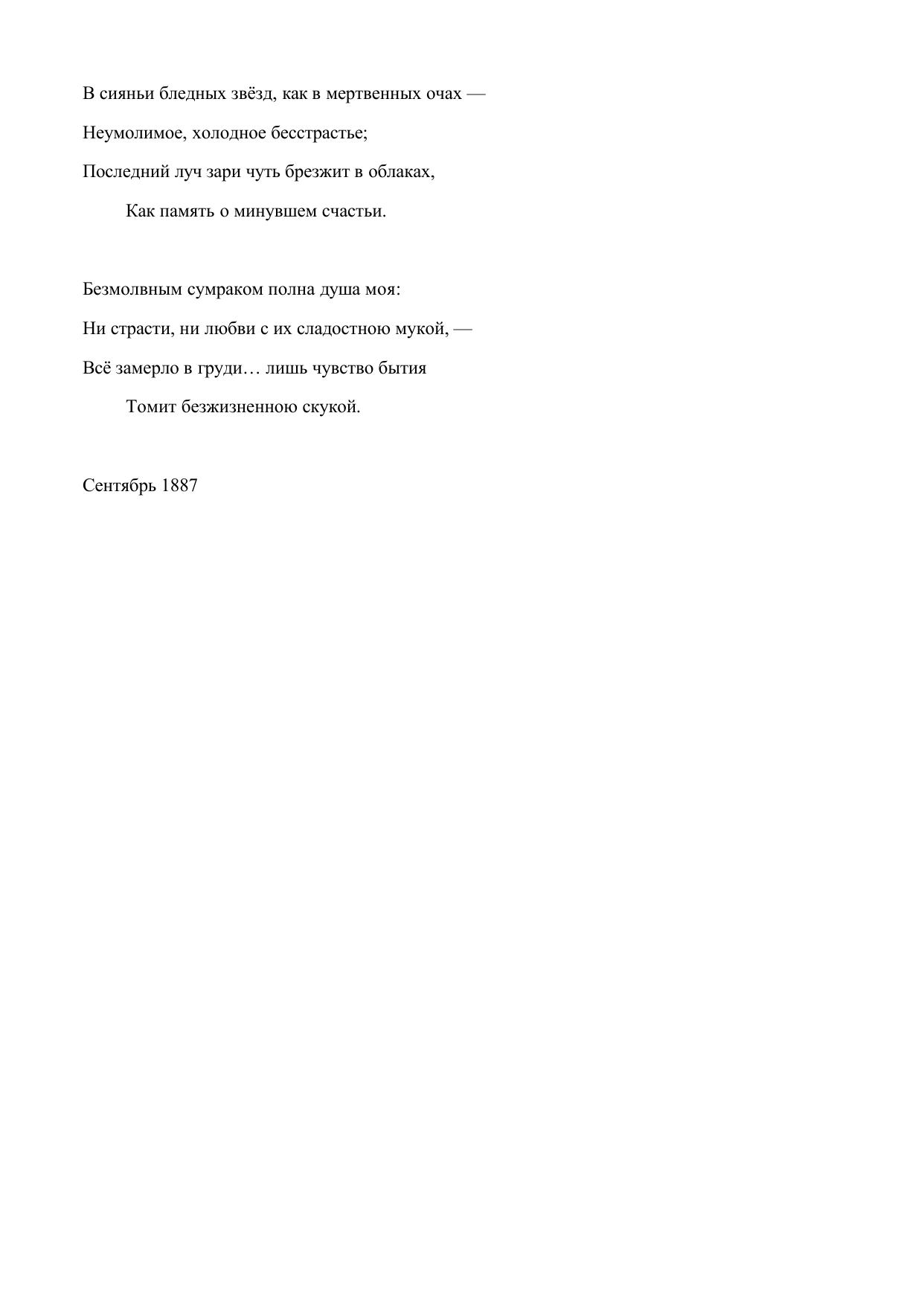 В сияньи бледных звезд, как в мертвенных очах