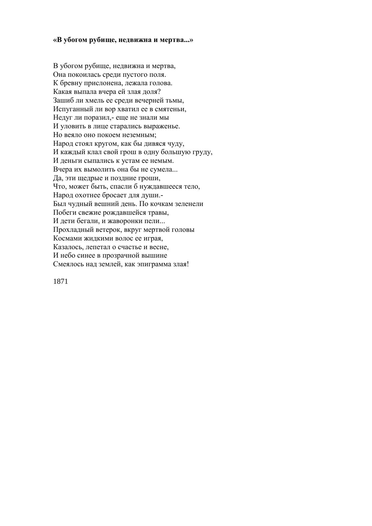 В убогом рубище, недвижна и мертва...