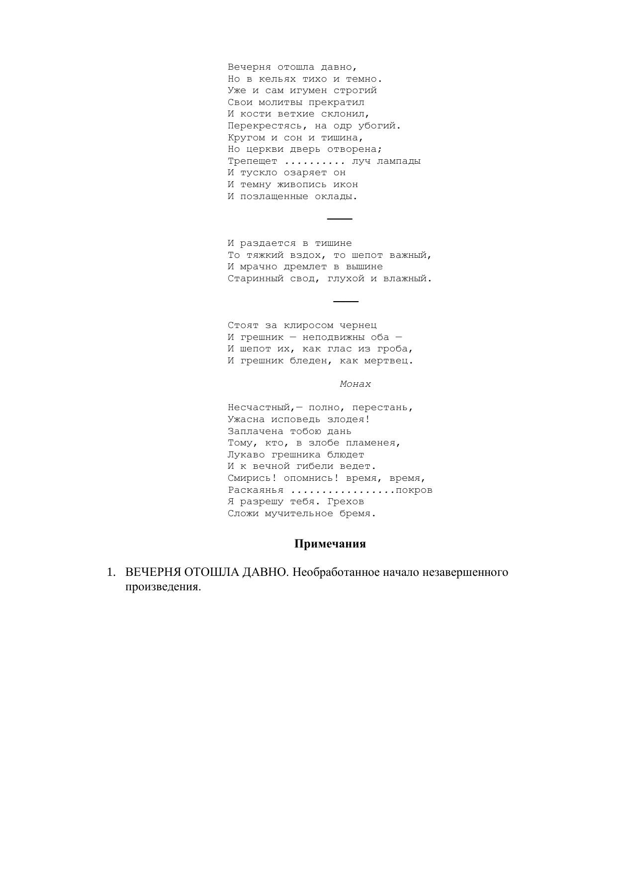 Вечерня отошла давно…