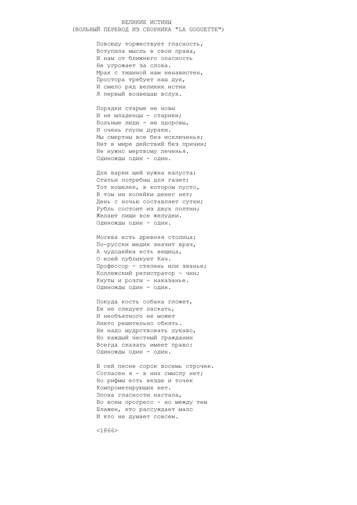 Великие истины (Вольный перевод из сборника La goguette)