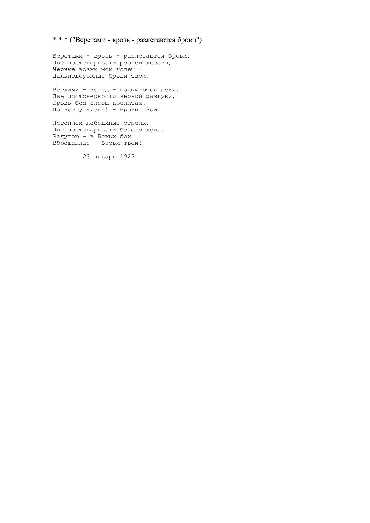 Верстами - врозь - разлетаются брови.