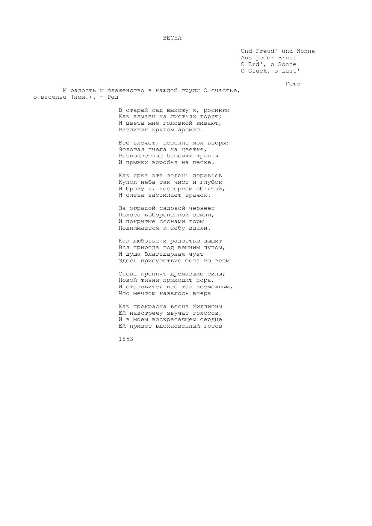 Весна (В старый сад выхожу я, росинки...)
