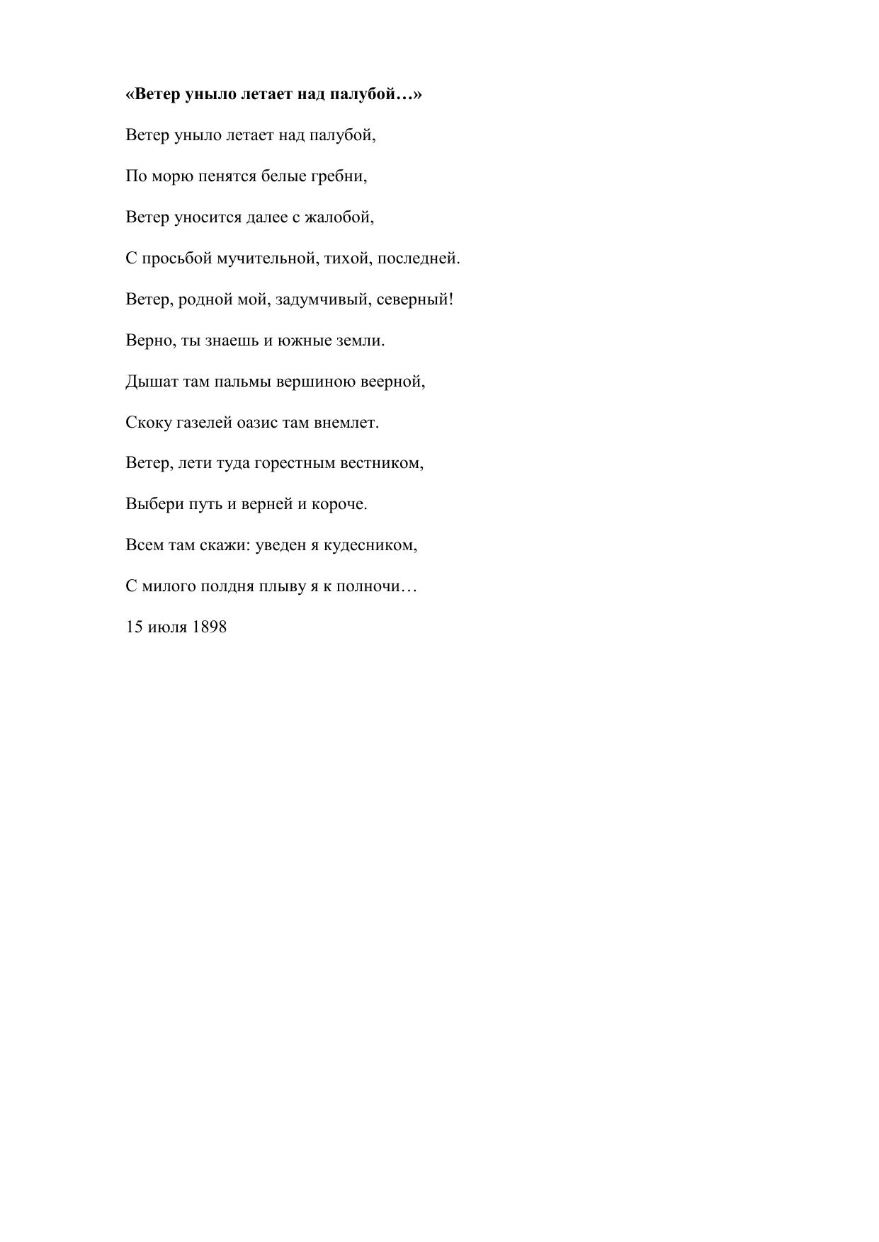 Ветер уныло летает над палубой…