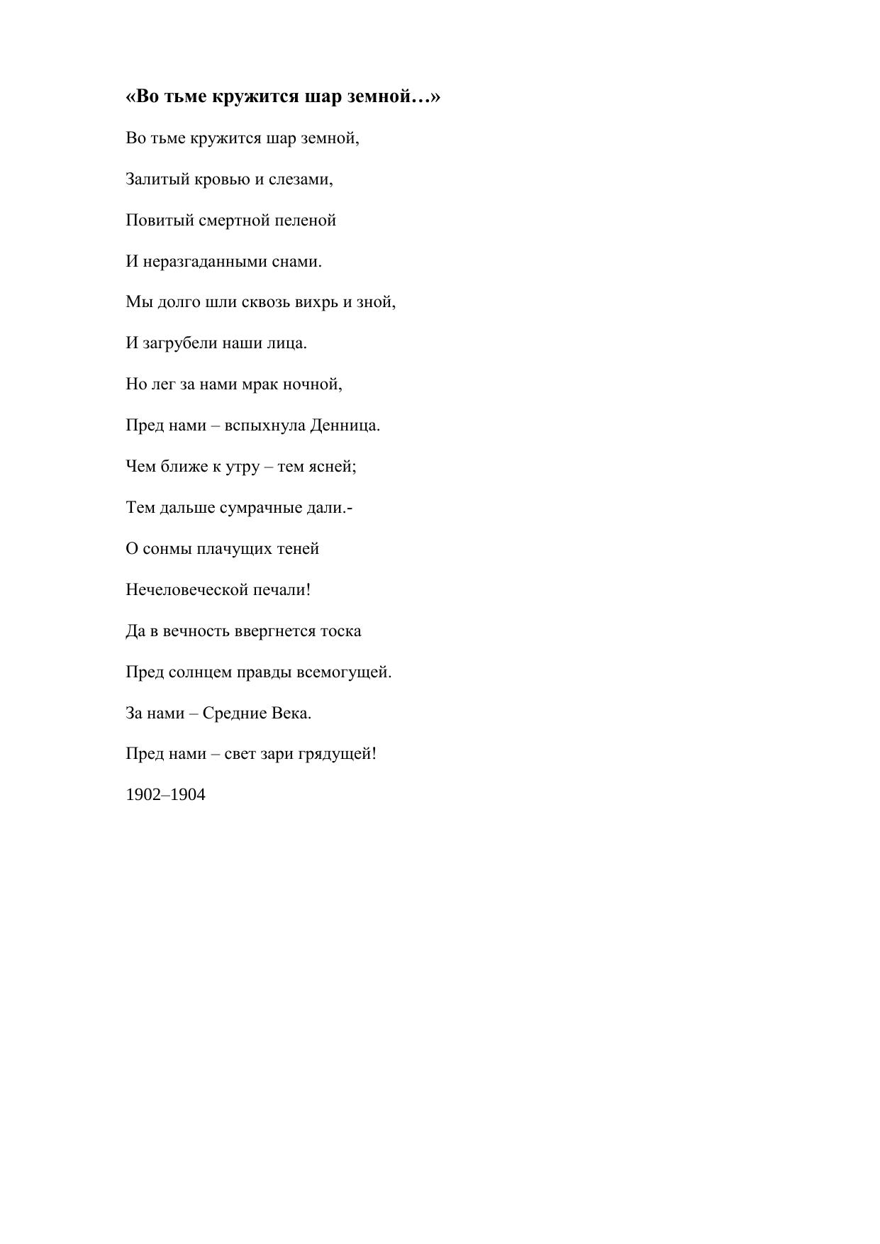 Во тьме кружится шар земной…