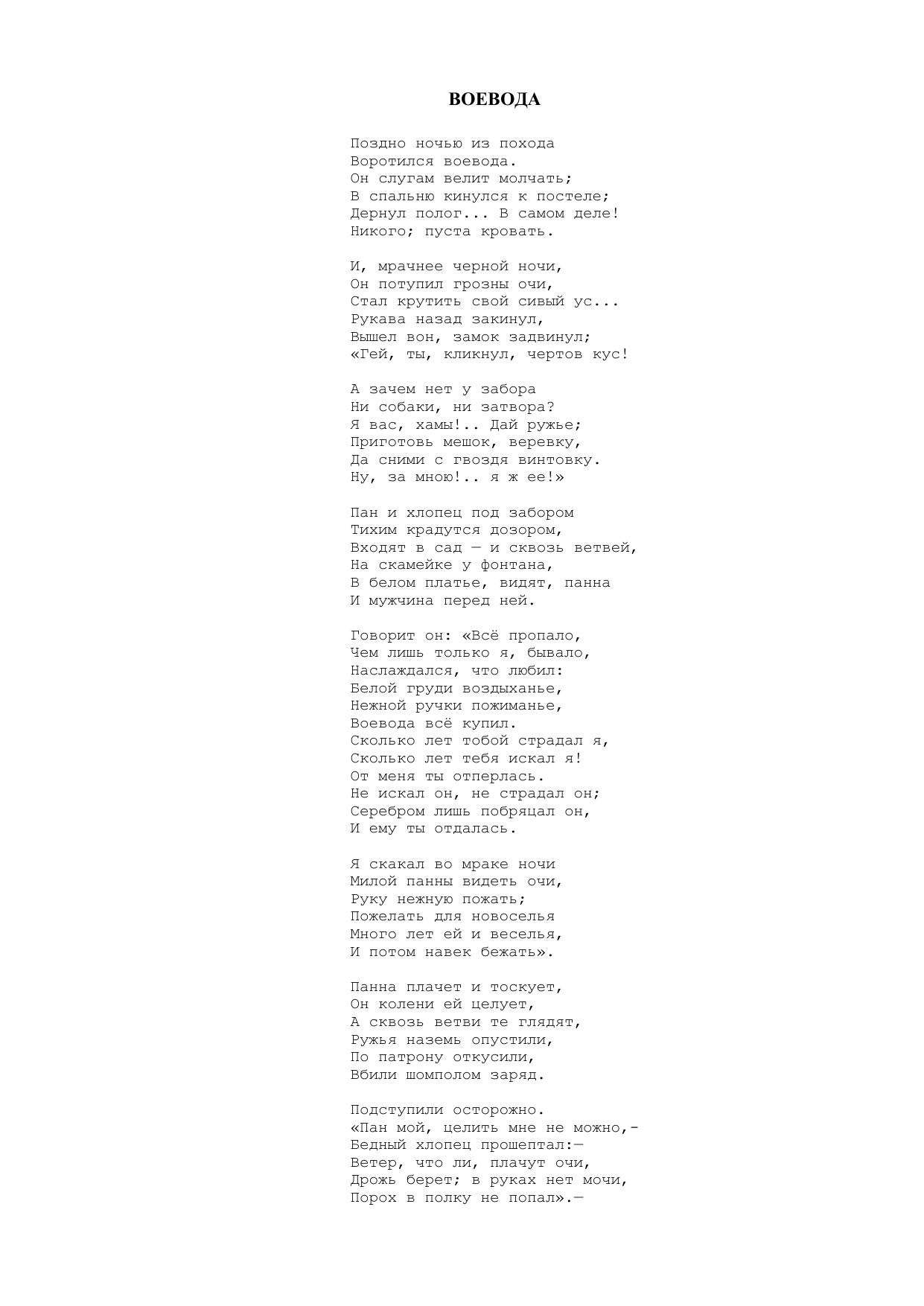 Воевода ("Поздно ночью из похода...")