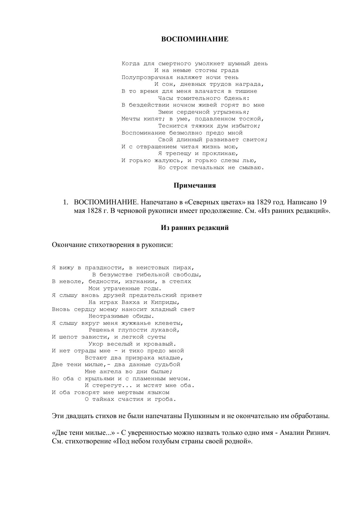 Воспоминание ("Когда для смертного умолкнет шумный день...")