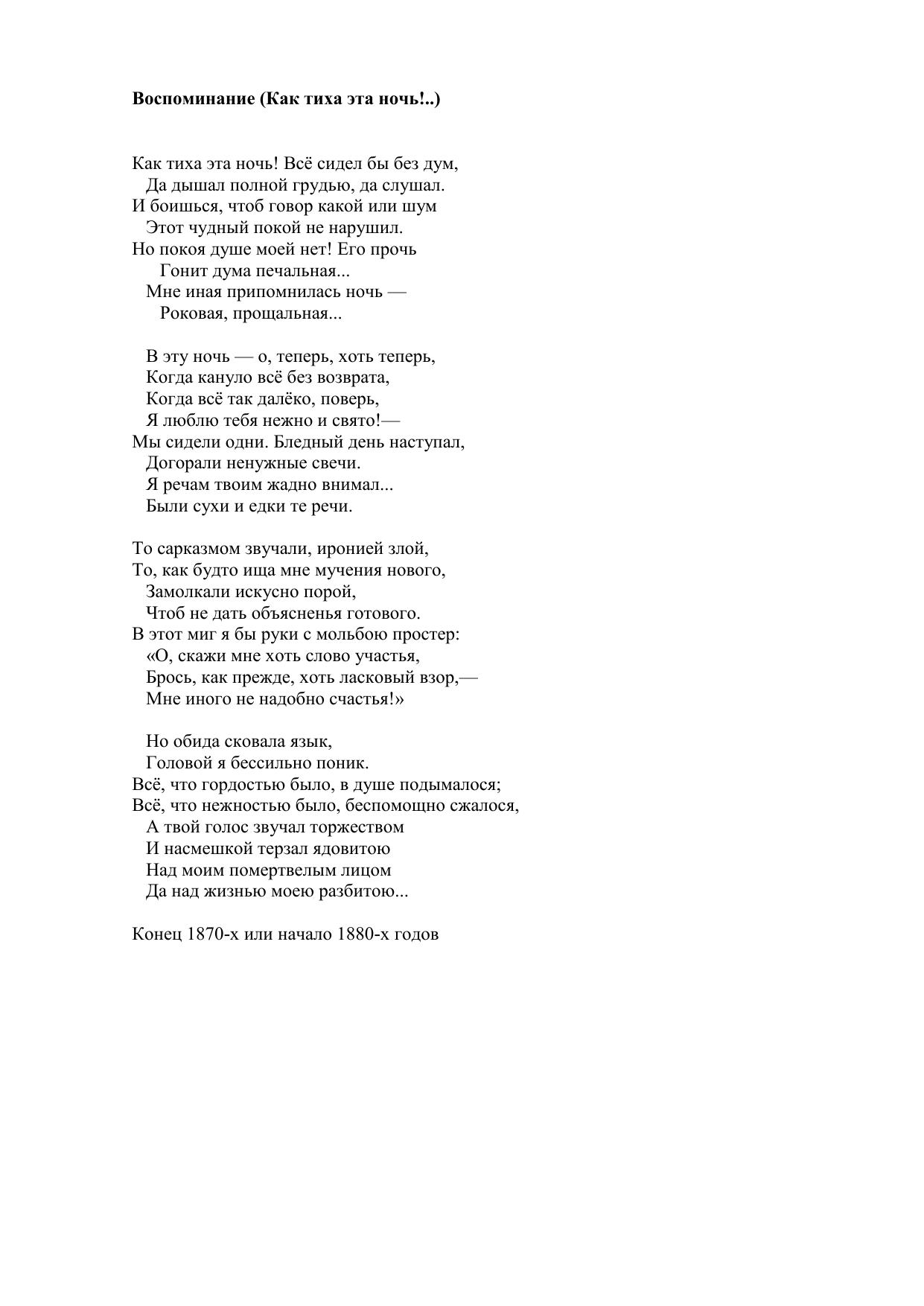 Воспоминание (Как тиха эта ночь!..)