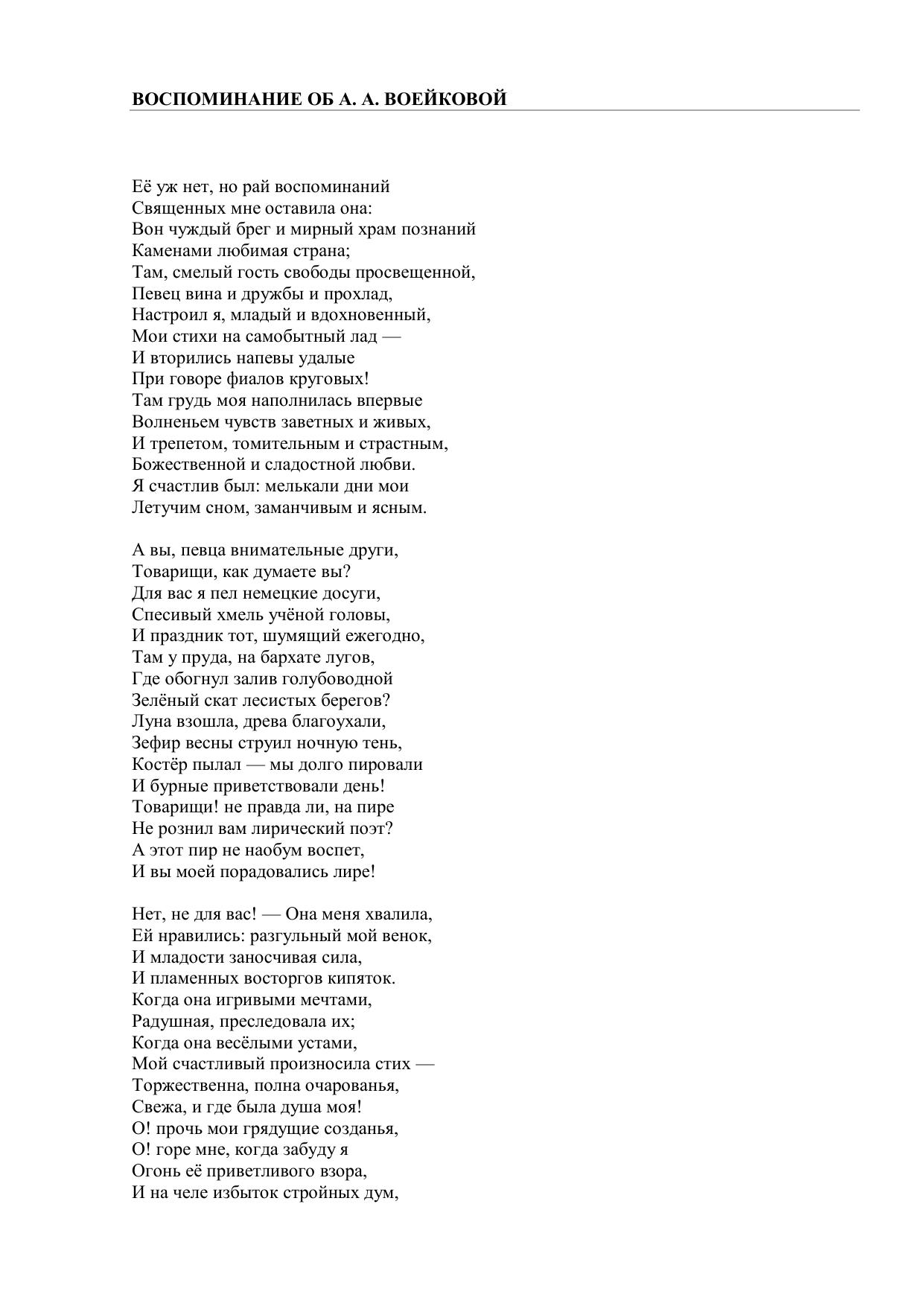 Воспоминание об А. А. Воейковой