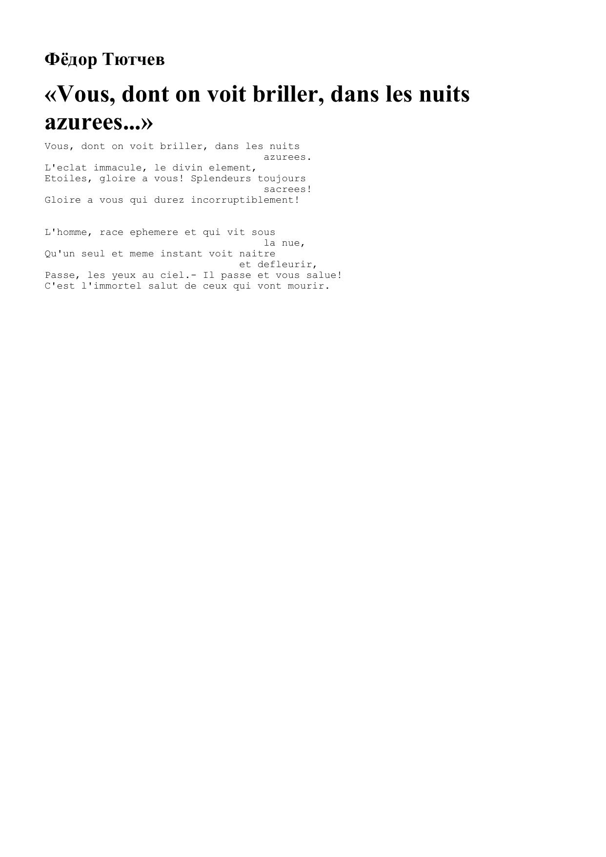 Vous, dont on voit briller, dans les nuits azurees