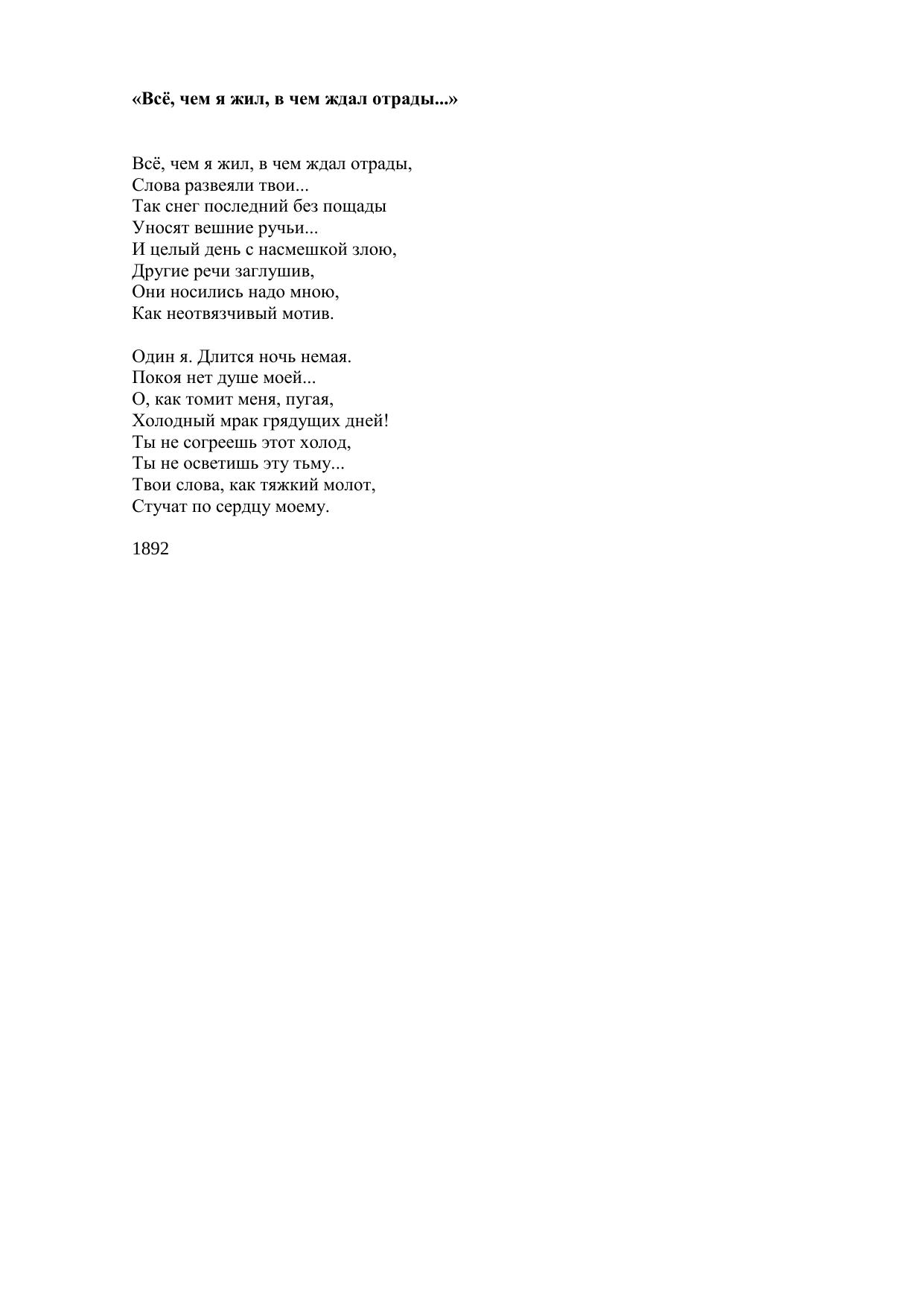 Всё, чем я жил, в чем ждал отрады...