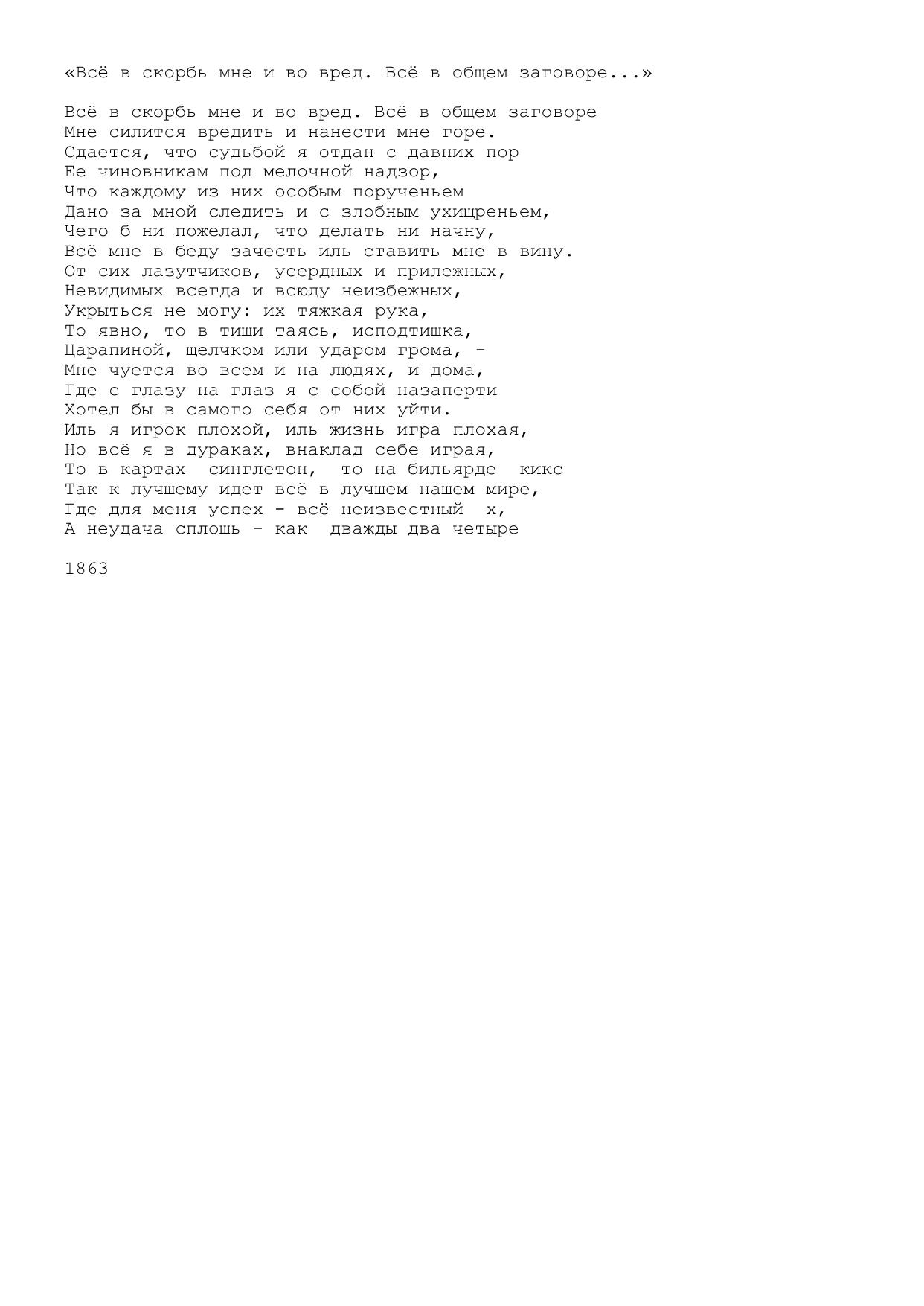 Всё в скорбь мне и во вред. Всё в общем заговоре...