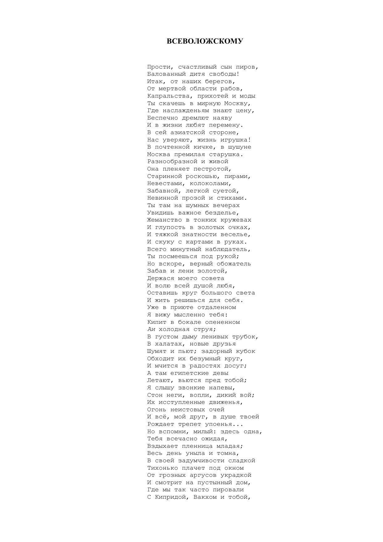 Всеволожскому ("Прости, счастливый сын пиров...")