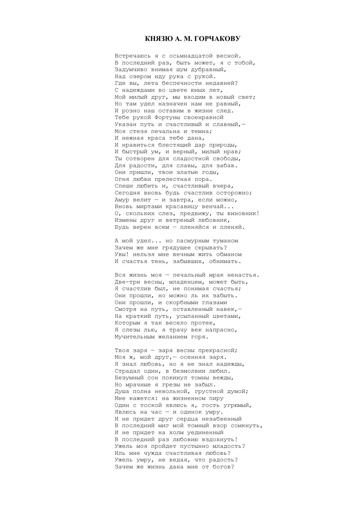 Встречаюсь я с осьмнадцатой весной...")